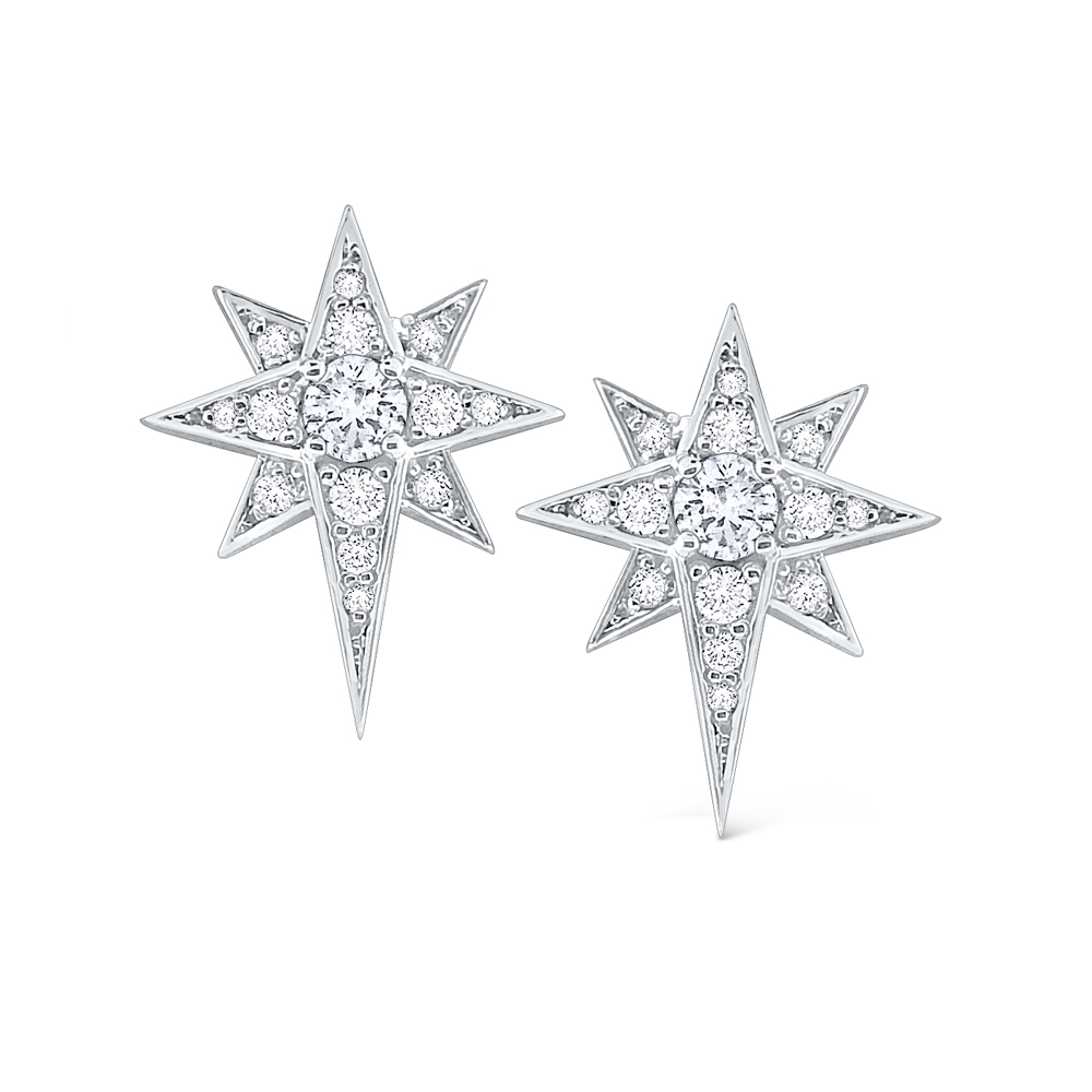 Diamonds shine in these beautiful 14K gold starburst earrings. Pair them with your other celestial KC jewels.