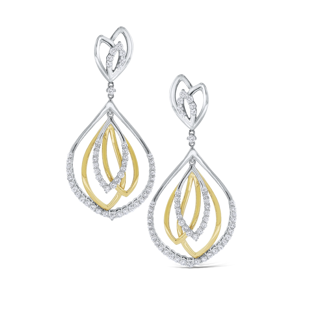 Inspired by the leaf in nature, these spectacular two tone gold and diamond earrings are all you need to make heads turn.