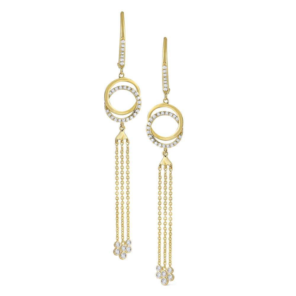 Triple chains accented with diamonds delicately hang below two intertwined circles. Perfectly pair them with a KC Diamond by the Yard necklace.