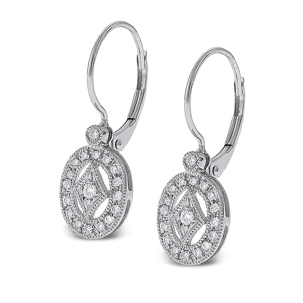 Diamond Oval Earrings in 14k White Gold with 36 Diamonds weighing .22ct tw.