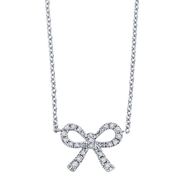 Diamond Mini Bow Necklace in 14k White Gold with 22 Diamonds weighing .10ct tw.