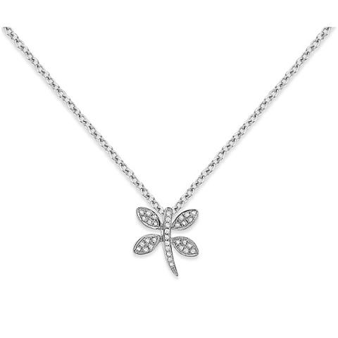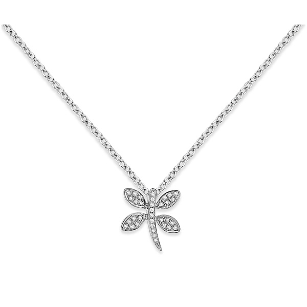 Diamond Mini Dragonfly Necklace in 14k White Gold with 34 Diamonds weighing .11ct tw.