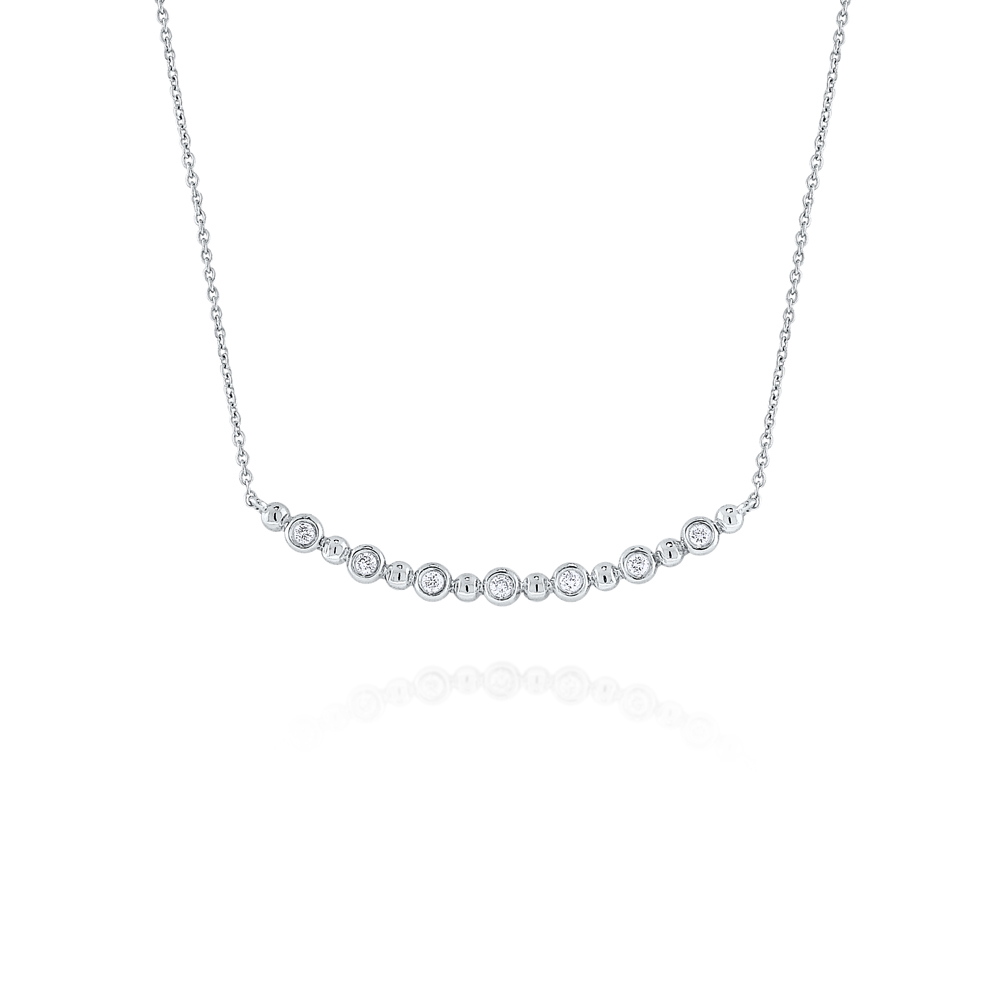 We added a new twist to the classic horizontal bar necklace by adding a slight curve. Perfect and simple worn solo or layer it with you other KC favorites. Comes on an adjustable 16-17-18" chain.