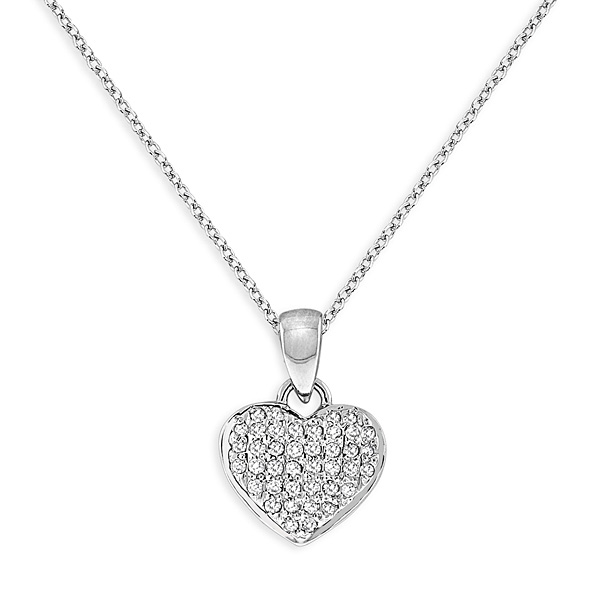 The heart is the symbol of love, romance and passion and you can show your romantic side with this gorgeous diamond heart necklace. It contains 40 sparkling .20 ct tw diamonds in its sweet and charming heart design and it will be sure to bring many compliments. This lovely necklace is shown here in elegant white gold.