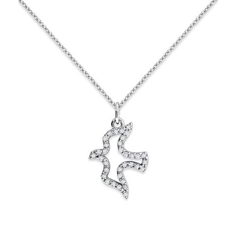 Diamond Bird Necklace in 14k White Gold with 34 Diamonds weighing .15ct tw.