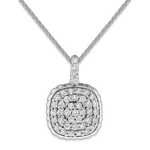 Diamond Square Drop Necklace in 14k White Gold with 41 Diamonds weighing .90ct tw.