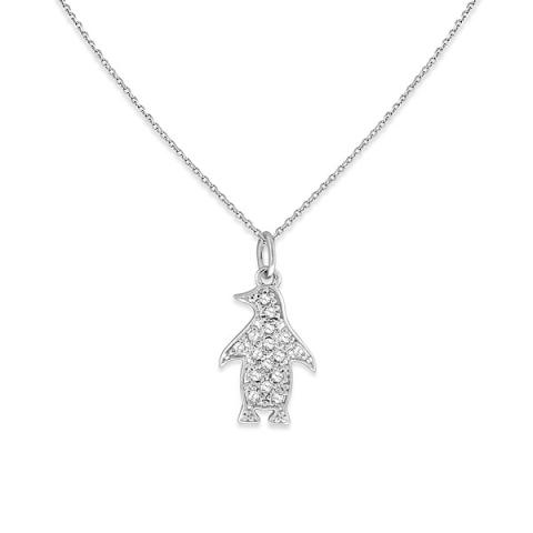 Diamond Penguin Necklace in 14k White Gold with 16 Diamonds weighing .08ct tw.