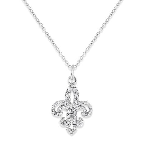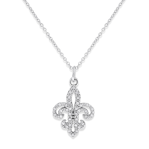The Fleur-de-lis is a traditional symbol of French Culture and it is reinterpreted into this stunning diamond necklace. This diamond fleur di lis necklace contains 36 shimmering .12 ct tw diamonds and is shown in white gold. It is a fantastic example of the high quality materials and expert craftsmanship of our beautiful jewelry.