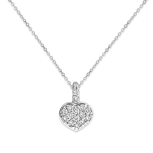 Diamond Heart Necklace in 14k White Gold with 15 Diamonds weighing .30ct tw.