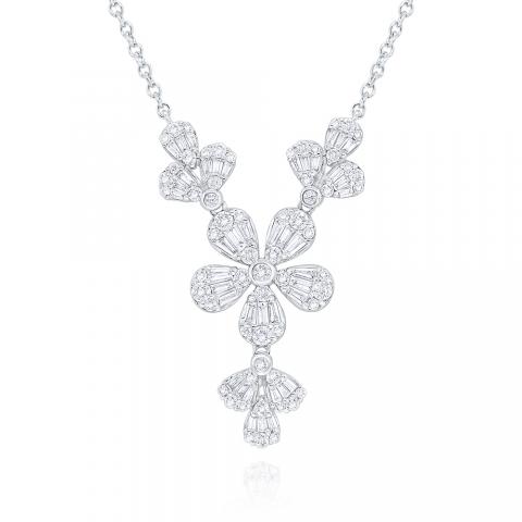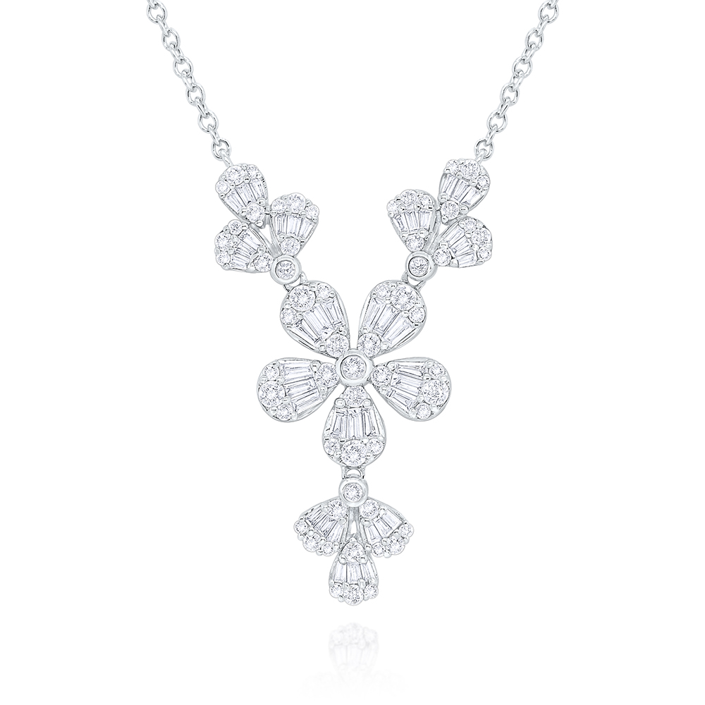 Petals of gold and baguette diamonds shine in this stunning multi flower necklace. You'll def turn heads this spring with this on!