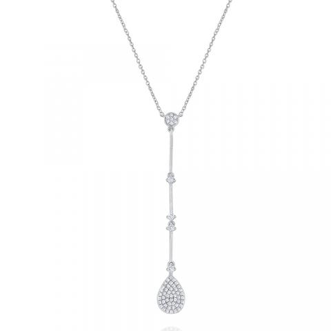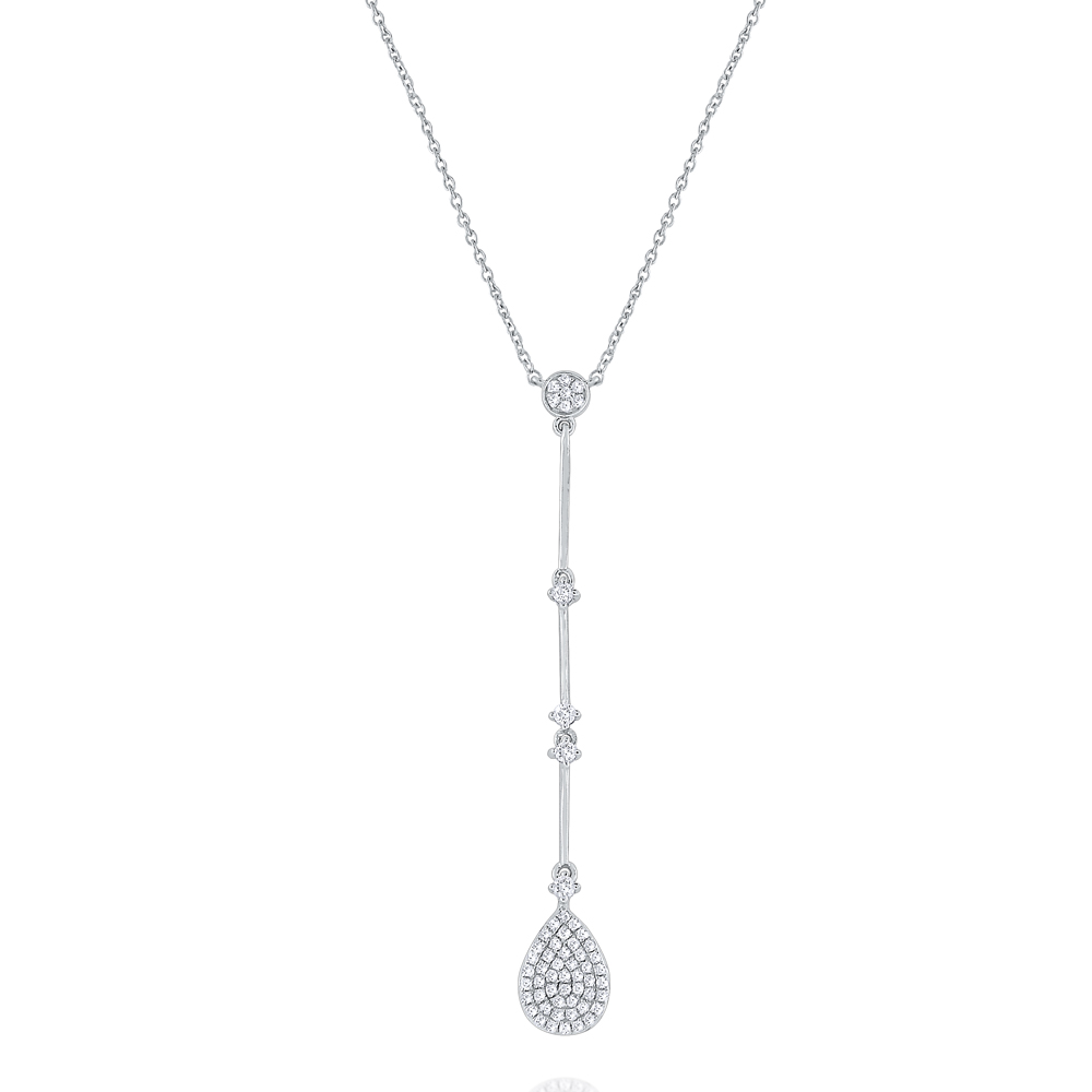 This trendy pear shape diamond drop necklace pairs perfectly with front / back earring E1128.