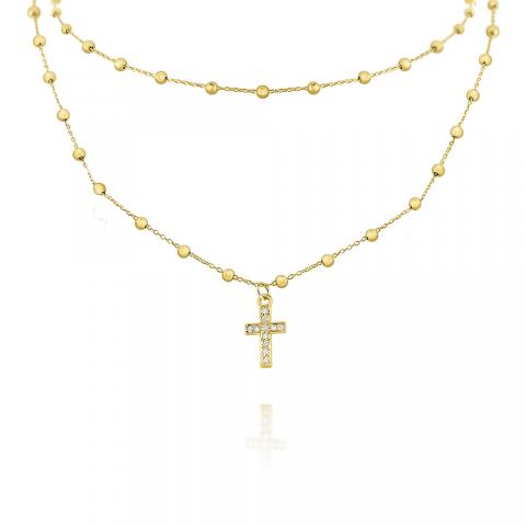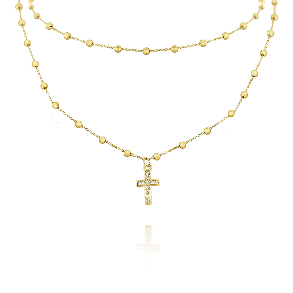 14k Gold and Diamond Beaded Cross Necklace, 18"
