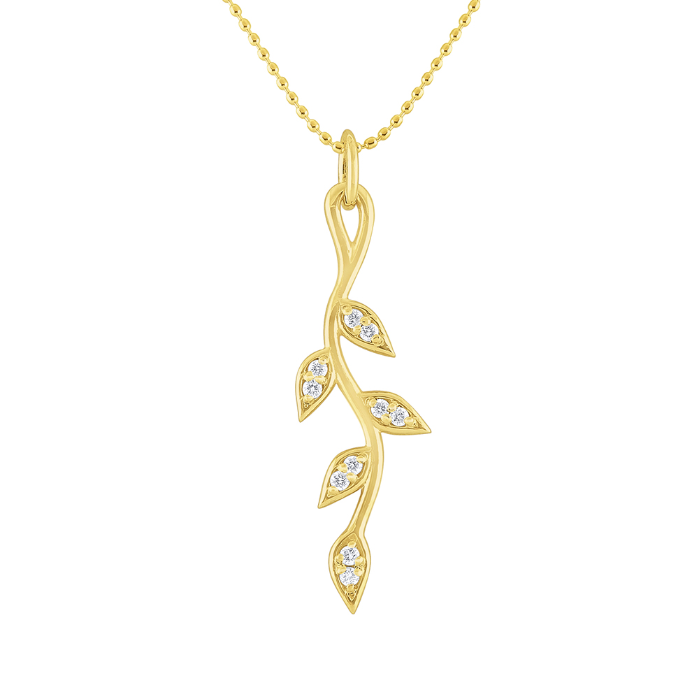 Diamonds set in a golden vine design make up this sweet necklace, perfect for layering.