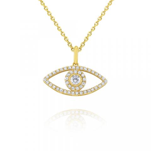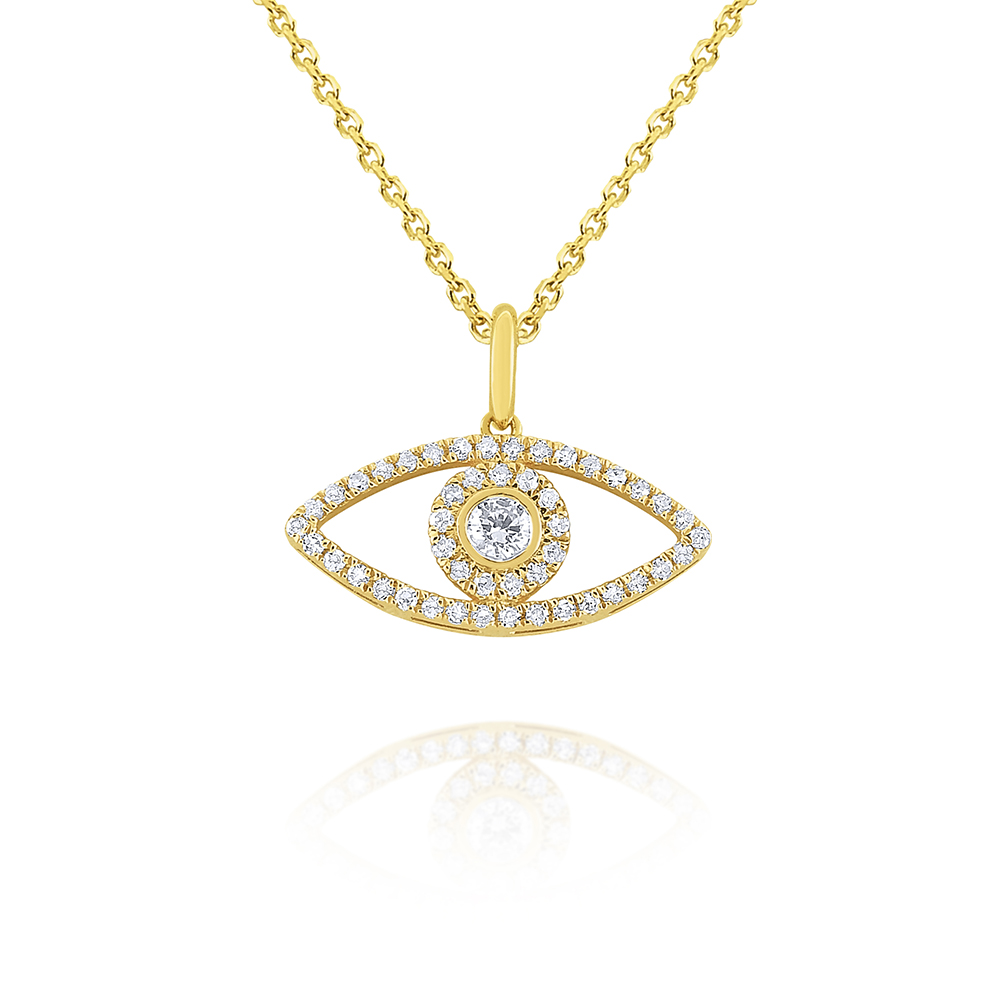 Sparkling diamonds set in 14k gold make up this protective amulet, the evil eye. Layer it with you other protective charms.