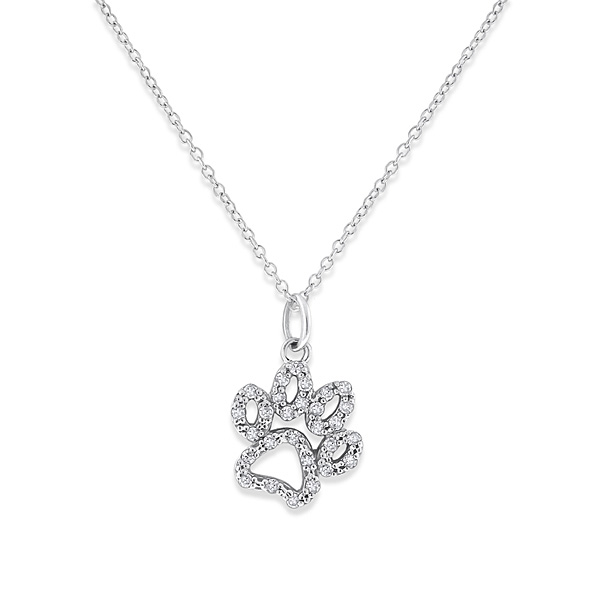 Diamonds are a girl's best friend and dogs are a man's best friend, but what about when the two combine? This sweet diamond paw necklace will show the world your love for your canine companion and highlight your elegant taste and style as well. The paw charm contains 28 stunning .14 ct tw diamonds and is pictured here in white gold.