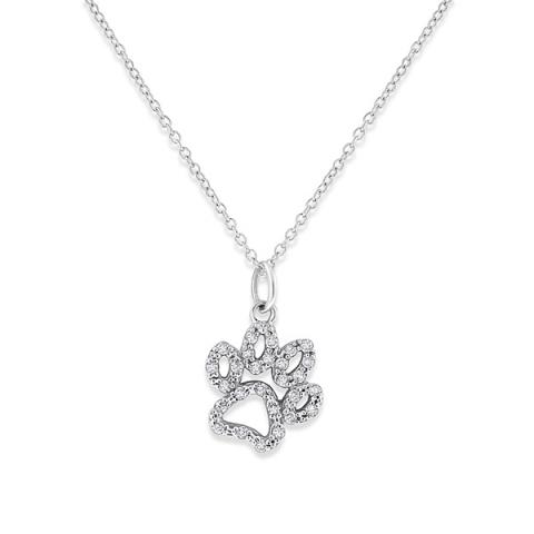 Diamond Paw Necklace in 14k White Gold with 28 Diamonds weighing .14ct tw.