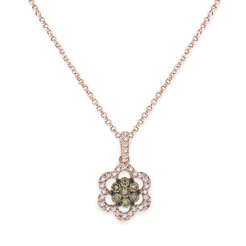 Champagne And White Diamond Flower Necklace in 14k Rose Gold with 36 Diamonds weighing .32ct tw