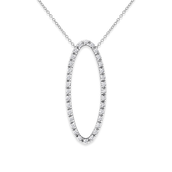 Diamond Oval Necklace in 14k White Gold with 32 Diamonds weighing .34ct tw