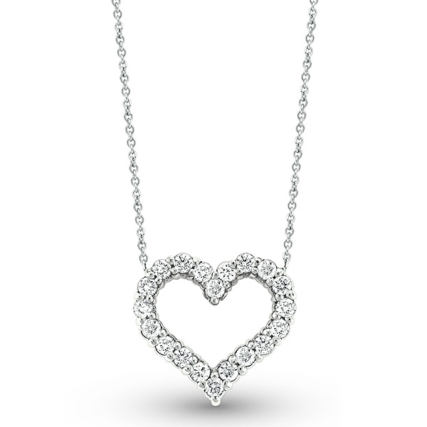 There is no wrong time to shower her with love. Set in 14K white gold with 20 glittery diamonds weighing .6ct tw, this stunning diamond heart necklace is a beautiful symbol of how you feel. Every time she touches this gorgeous stunner, she will only have loving thoughts of you.