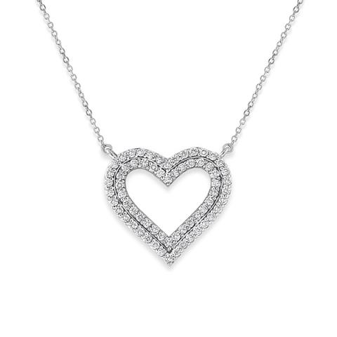 Diamond Double Heart Necklace in 14k White Gold with 66 Diamonds weighing .66ct tw