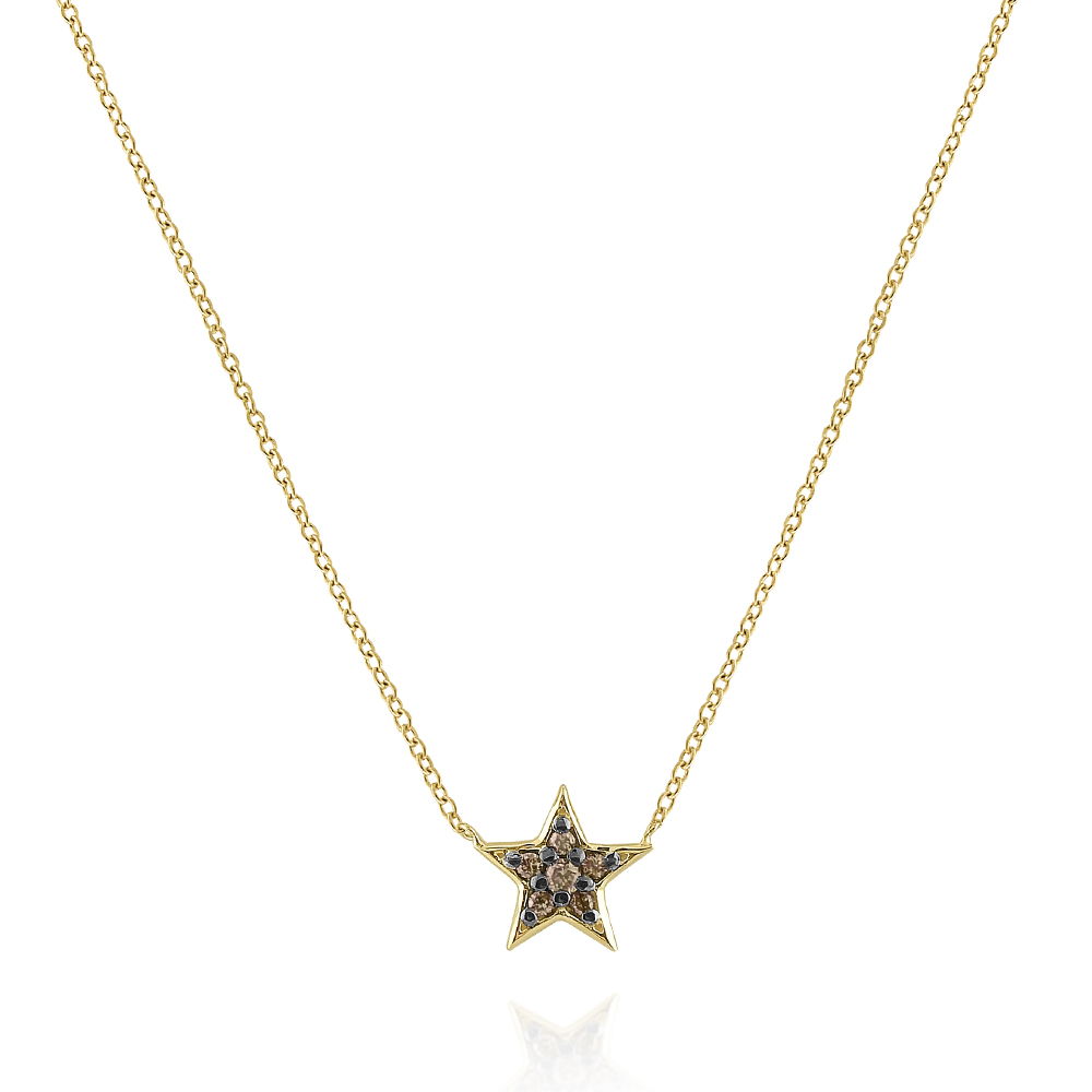 6 diamonds make up this stationary star giving this 14K gold necklace that glimmering sparkle in a unique way with its champagne diamond color.