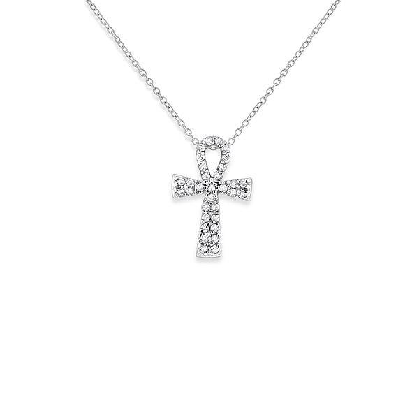 Diamond Ankh Necklace in 14k White Gold with 32 Diamonds weighing .14ct tw