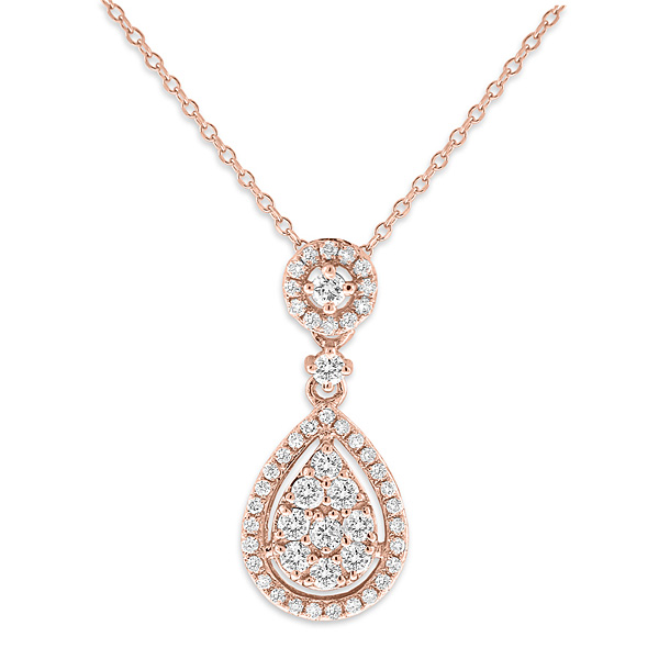 Diamond Teardrop Necklace in 14k Rose Gold with 50 Diamonds weighing .43ct tw.