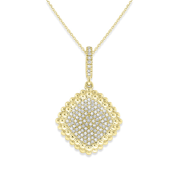 Diamond Concave Square Drop Necklace in 14k Yellow Gold with 107 Diamonds weighing .25ct tw.