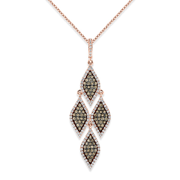 Champagne And White Diamond Marquise Drop Necklace in 14k Rose Gold with 199 Diamonds weighing 1.12ct tw.