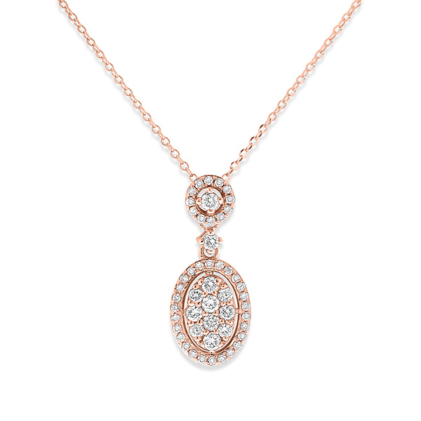 Diamond Oval Drop Necklace in 14k Rose Gold with 50 Diamonds weighing .42ct tw.