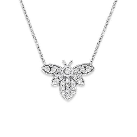 Diamond Bumble Bee Necklace in 14k White Gold with 21 Diamonds weighing .30ct tw.