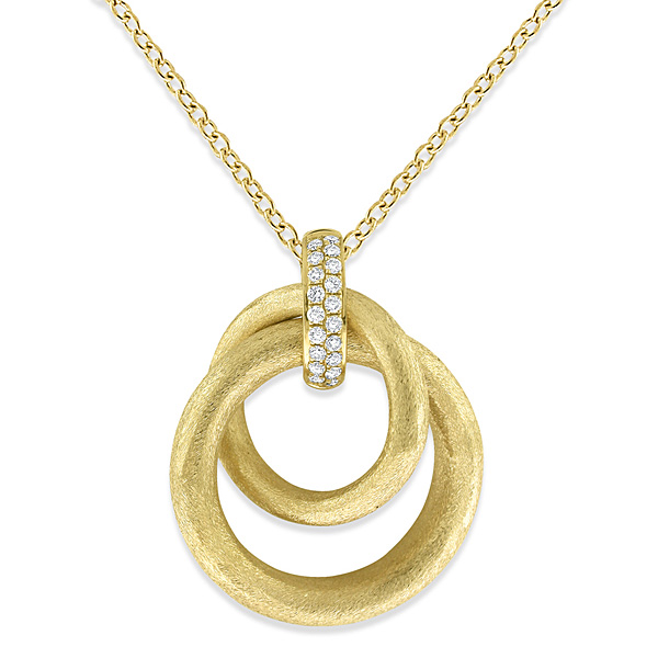 Diamond Double Circle Necklace in 14k Yellow Gold with 38 Diamonds weighing .30ct tw.