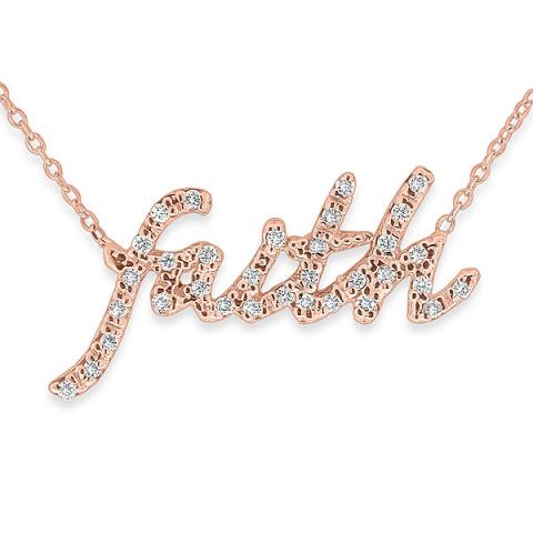 Whether your name is Faith or you believe in "Faith" this beautiful necklace is sure to be one that you will love. Created in 14k rose gold with 33 dazzling diamonds weighing .17cts tw, this lovely necklace is sure to make a great gift for yourself or for someone else.