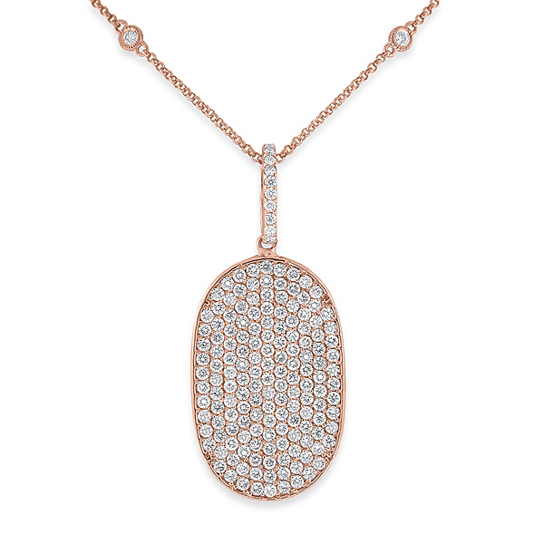 Diamond Oval Drop Necklace in 14k Rose Gold with 172 Diamonds weighing 2.17ct tw.