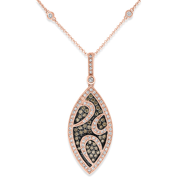 Champagne And White Diamond Marquise Drop Necklace in 14k Rose Gold with 127 Diamonds weighing 1.15ct tw.