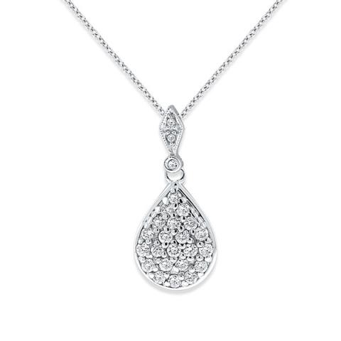 Diamond Large Teardrop With Bale Necklace in 14k White Gold with 25 Diamonds weighing .44ct tw.