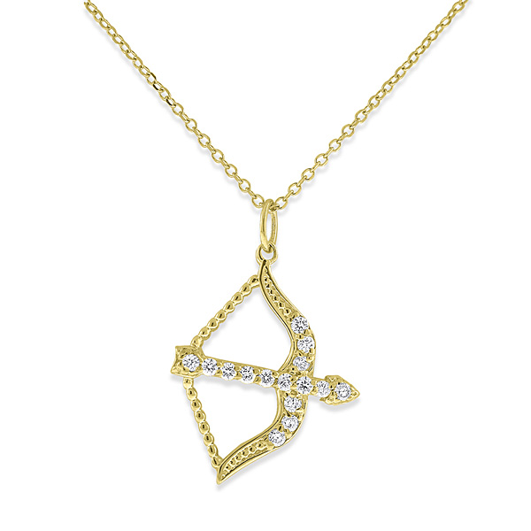 Diamond Bow and Arrow Necklace in 14k Yellow Gold with 15 Diamonds weighing .16ct tw.