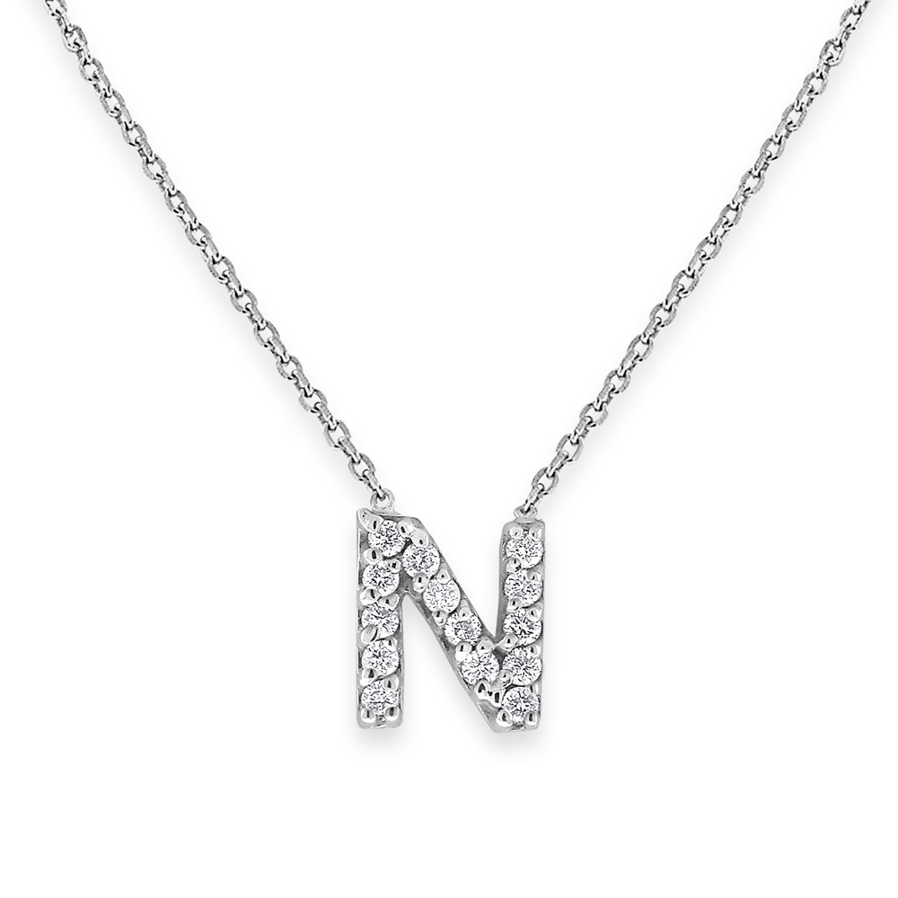 This gold and diamond initial necklace is adorable worn on its own or layered with other necklaces.