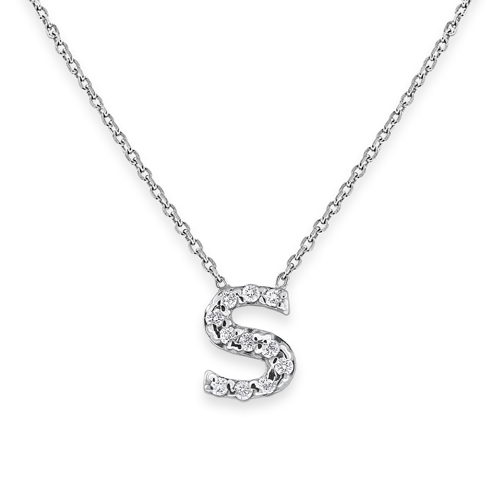 Diamond Bitty Block Initial S Necklace
