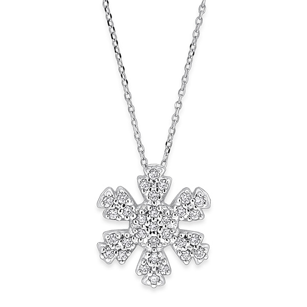 It's so magical and beautiful when the landscape is coated with a blanket of freshly fallen show. You can capture some of that winter beauty with this diamond snowflake necklace. It glitters and shines like the sunlight reflecting through an icicle, thanks to the 31 twinkling .31 ct tw diamonds. This beautiful piece is shown in white gold.