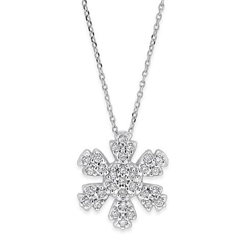 Diamond Snowflake Necklace in 14k White Gold with 31 Diamonds weighing .31ct tw.