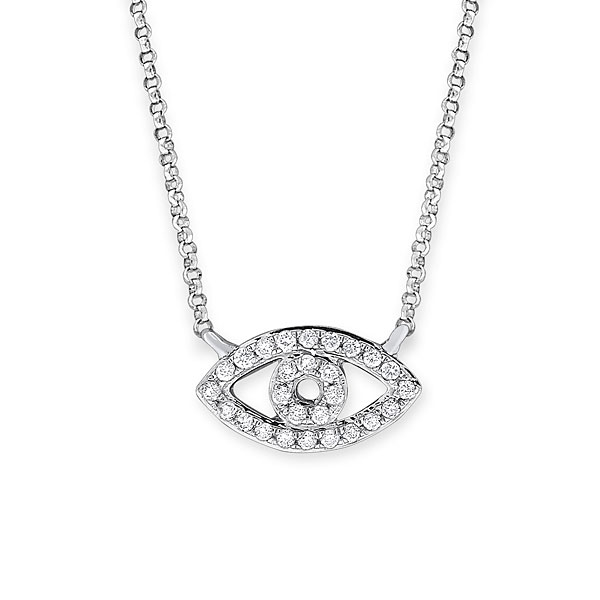 Let her know that you have your eye on her with this ���������������â�������ï�������ÿ�������ý�������ï�������ÿ�������ýevil eye���������������â�������ï�������ÿ�������ý�������ï�������ÿ�������ý diamond necklace. Set with 27 mystical diamonds weighing .09cts tw, this necklace is one way to tell her that she���������������â�������ï�������ÿ�������ý�������ï�������ÿ�������ýs unique and special and that she deserves a special piece of jewelry. This necklace is a new way to strengthen your beliefs.
