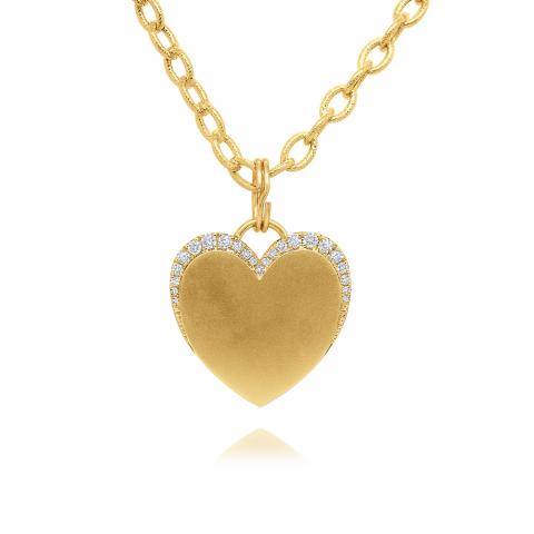 14k Gold and Diamond Heart Necklace, Medium