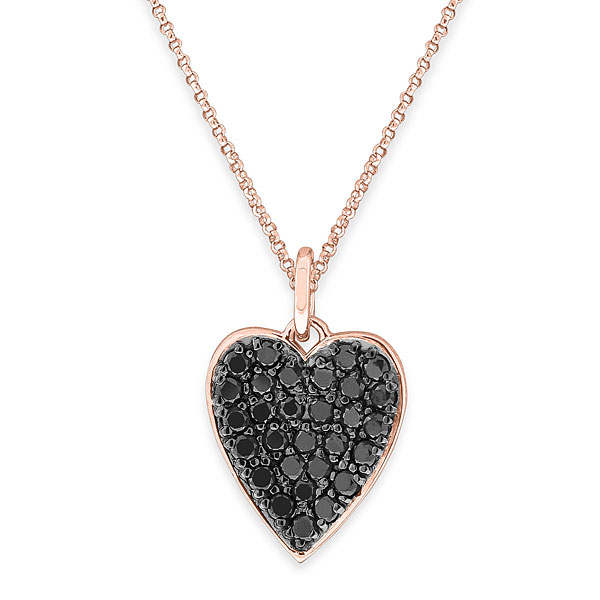 Black Diamond Heart Necklace in 14K Rose Gold with Black Rhodium with 29 diamonds weighing 1.07ct tw