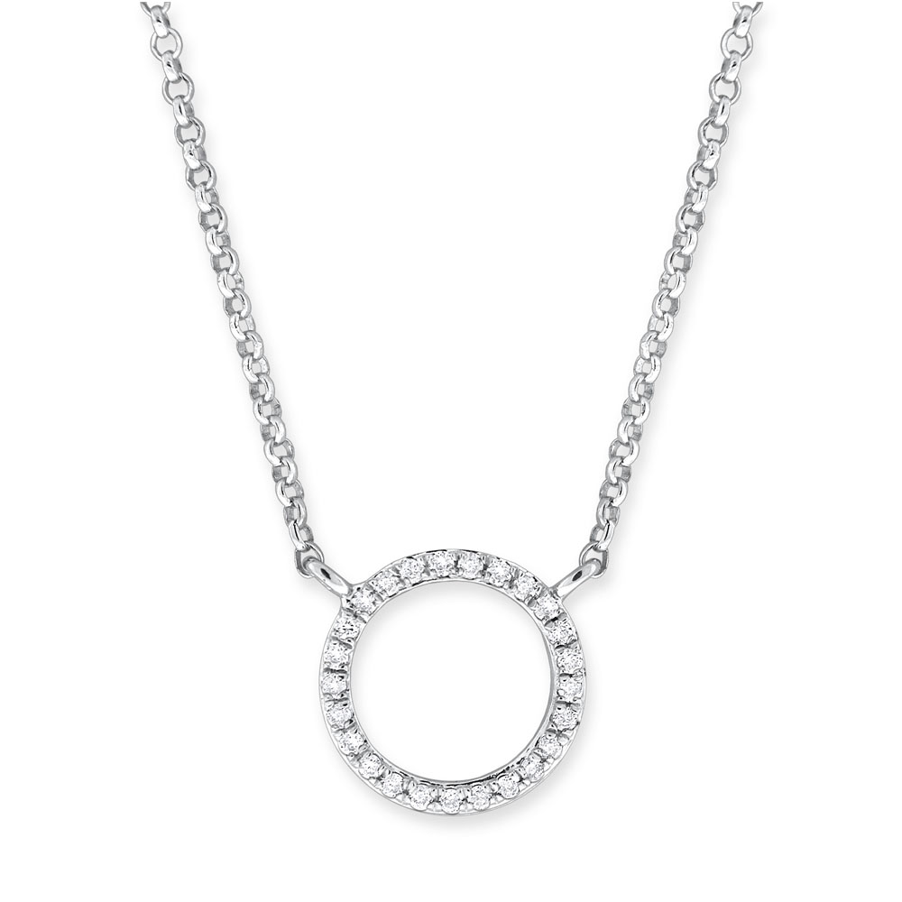 Diamond Circle Necklace in 14K White Gold with 25 Diamonds Weighing .07ct tw