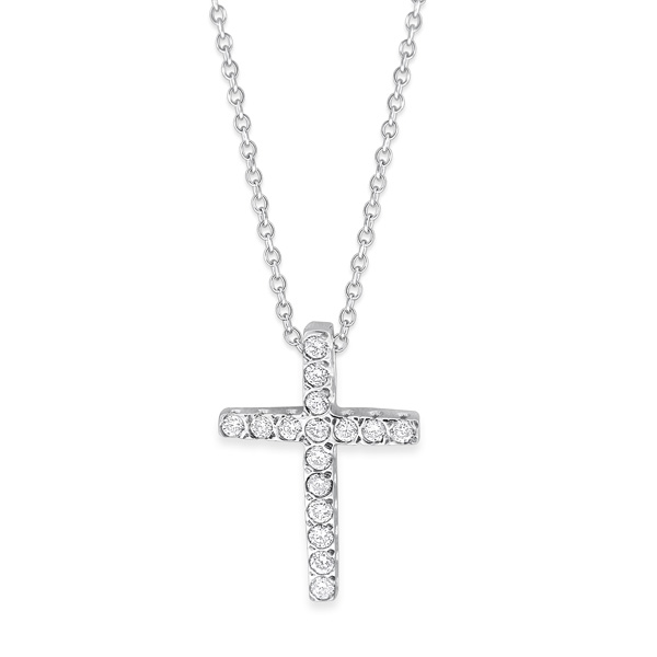 Diamond Small Cross Necklace in 14K White Gold with 16 Diamonds Weighing .15ct tw.