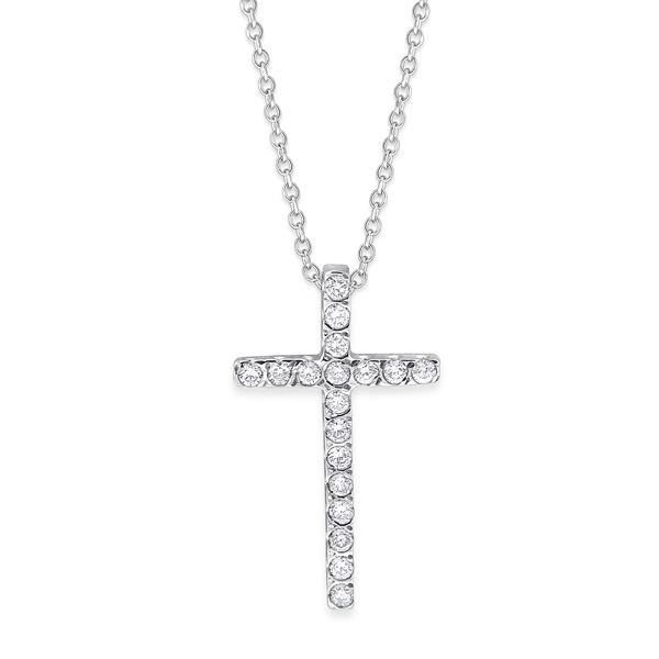 Diamond Medium Cross Necklace in 14K White Gold with 18 Diamonds Weighing .16ct tw.
