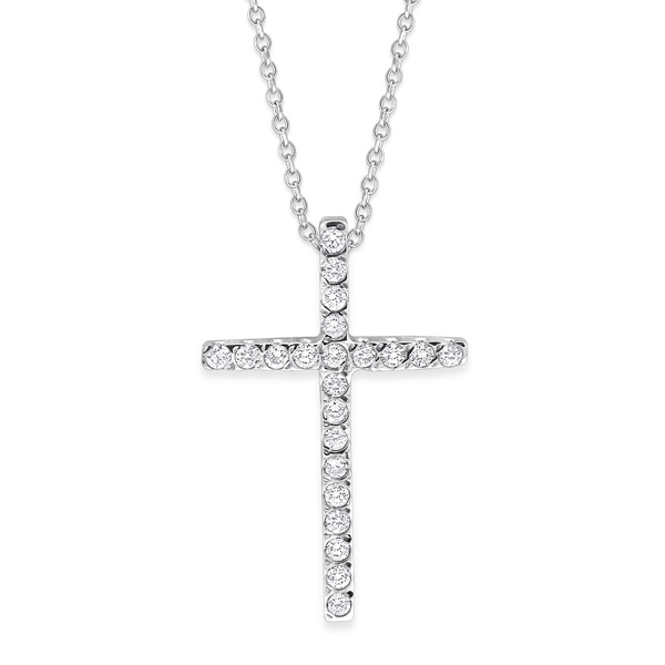 Diamond Large Cross Necklace in 14K White Gold with 22 Diamonds Weighing .20ct tw.