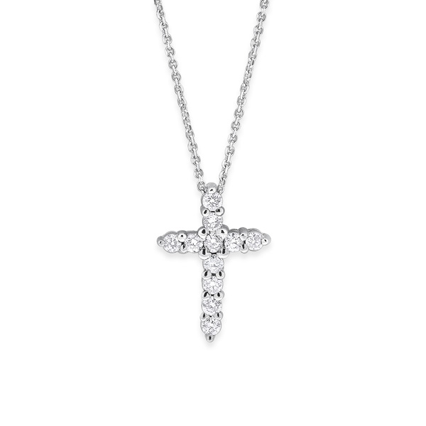 This small diamond cross dangling from a 16" chain could not be sweeter. Pair it with our adorable tiny diamond cross studs, E5838.
