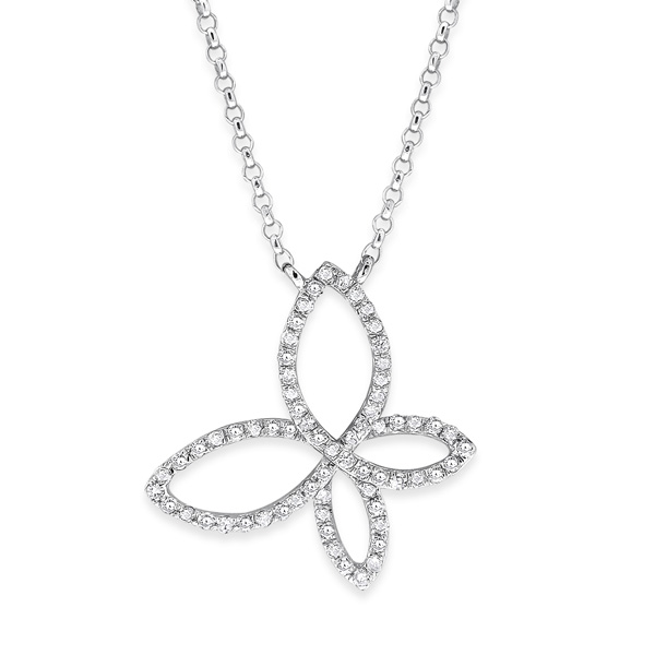 Diamond Butterfly Necklace in 14K White Gold with 66 Diamonds Weighing .21ct tw.